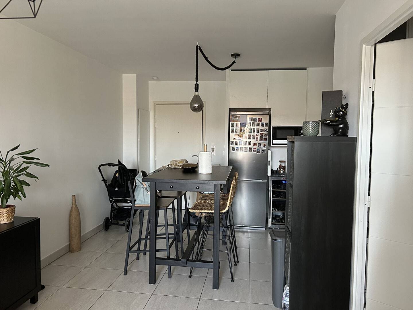 Il est orienté au sud-ouest. Il se situe au 1ér étage d'un petit immeuble avec ascenseur. Le bâtiment est équipé d'un interphone. L'appartement offre une cuisine américaine équipée, une salle d'eau et des toilettes, une chambre avec dressing. Le chauffage est individuel.